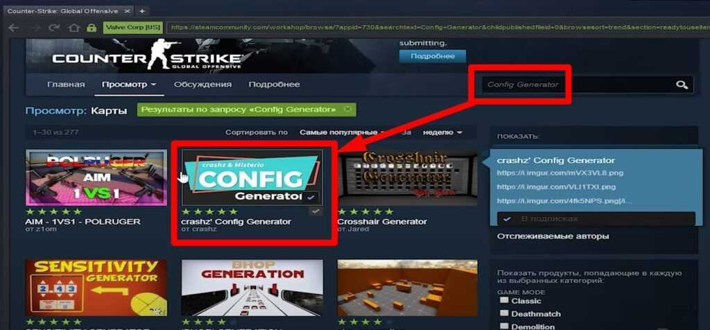 3. Третий способ может вам открыть дополнительные новые функции, которые позволят поставить настройки для бенихоупа, но и куча всего интересного. Открываем мастерскую cs:go и устанавливаем себе карту под названием Config Generator: